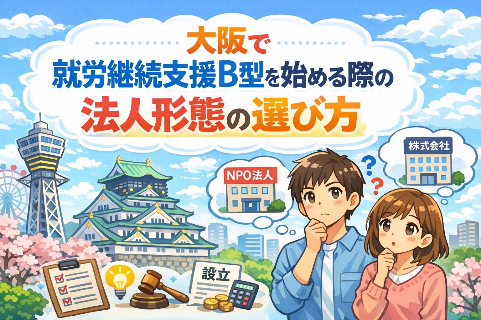 大阪で就労継続支援B型の立ち上げを検討する際、多くの方が最初に悩むのが「法人形態をどうするか」という問題です。